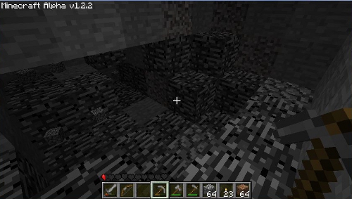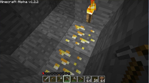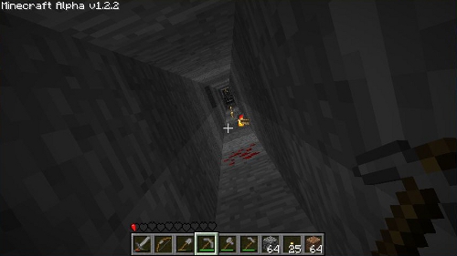 へと掘ってい行く。途中、レッドストーンや金などが見つかりました。