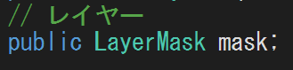 クラスのメンバに「public」としてLayerMask型を宣言